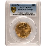 With only three dates available for the 1/2 oz Burnished American Gold Eagle Coin, the records for demand are quite low. The 2008 release had the highest mintage at 16,682 coins, followed the 2006 coin at 15,164 coins, and the 2007 coin at 11,455 coins.