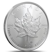 The reverse field features a sugar maple leaf, designed by Walter Ott. This image can also be seen on the Canadian Gold Maple Leaf and has been featured on these coins since the debut of the coin program. In 2014, new security features were added. Among these were radial lines on the reverse as well as a micro-engraving laser mark.