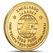 Founded in 1902 by Charles W. Engelhard Sr., Engelhard Corporation grew into one of the leading names in the refining and fabrication of precious metals. Today, through MTB and the MKS PAMP Group, Engelhard products are once again available to collectors and investors. These offerings include modern editions of classic Engelhard designs, such as gold rounds modeled after the Gold Prospector series from the 1970s. You can now purchase 1/10 oz Engelhard Prospector Gold Rounds at BGASC.