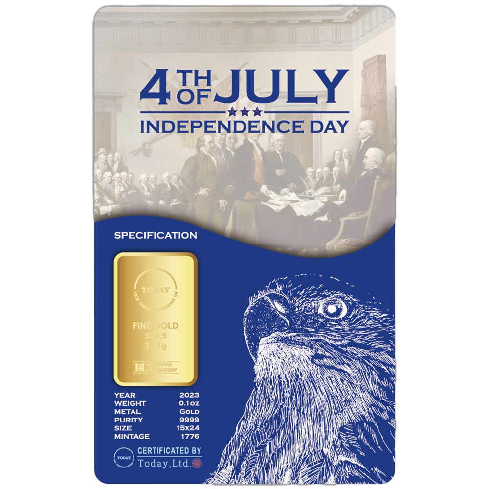 Each year, Americans gather on the 4th of July to celebrate their nations independence. An iconic holiday in the U.S., the day commemorates the moment in 1776 when the Founding Fathers adopted the Declaration of Independence. Now, BGASC offers 1/10 oz Today LTD Independence Day Gold Bars to you for purchase online.