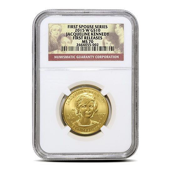 Each of the 1/2 oz First Spouse Gold Coins offered here has earned a Mint State 70 grade. This means the coins were certified to be in perfect condition, with full original luster and no noticeable flaws. At BGASC, these 1/2 oz First Spouse Gold Coins are available from various years throughout the series. The program began in 2007 and continued through 2016. The series does not yet include spouses of presidents who followed George H.W. Bush, as those presidents have not appeared in the $1 Presidential series so far. Some coins may feature different label styles, but these are chosen at random and cannot be selected in advance.