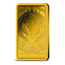 Each 1/200 oz Proof Solomon Islands Zodiac Capricorn Gold Coin comes packaged in a protective blister card. The design on the card follows the Zodiac Signs theme, and the coin itself is a proof specimen with frosted designs and mirrored background fields.