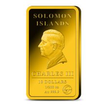 The obverse side of the Proof Solomon Islands Zodiac Leo Gold Coin showcases a portrait of King Charles III. This left-profile relief is one of the first portraits of the monarch, depicted without a crown.