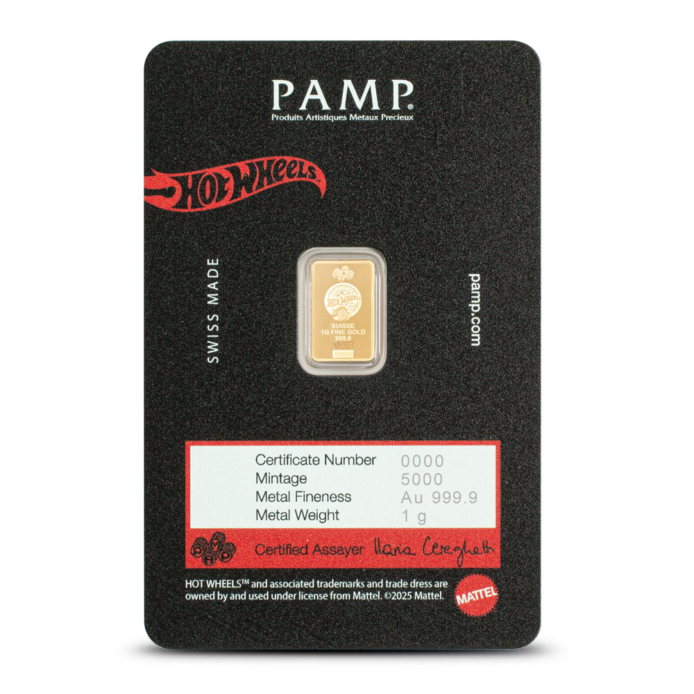 • Obverse presents the PAMP logo with a Hot Wheels design.