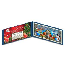 Each $1 Merry Christmas Legal Tender Note comes inside a blue presentation folio for easy display and protection. The folio includes a Certificate of Authenticity from the Merrick Mint, confirming its value as both a legal tender note and a collectible item.