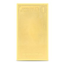 Each note in this 100-count pack comes in its own protective sleeve, bundled together for bulk purchase. All notes are made from 24-karat gold, with a combined gold weight of 1/10 Troy oz. The Oklahoma-specific imagery is finely printed onto the surface of each note. A UV security feature is included on the reverse to provide added protection and ensure authenticity.