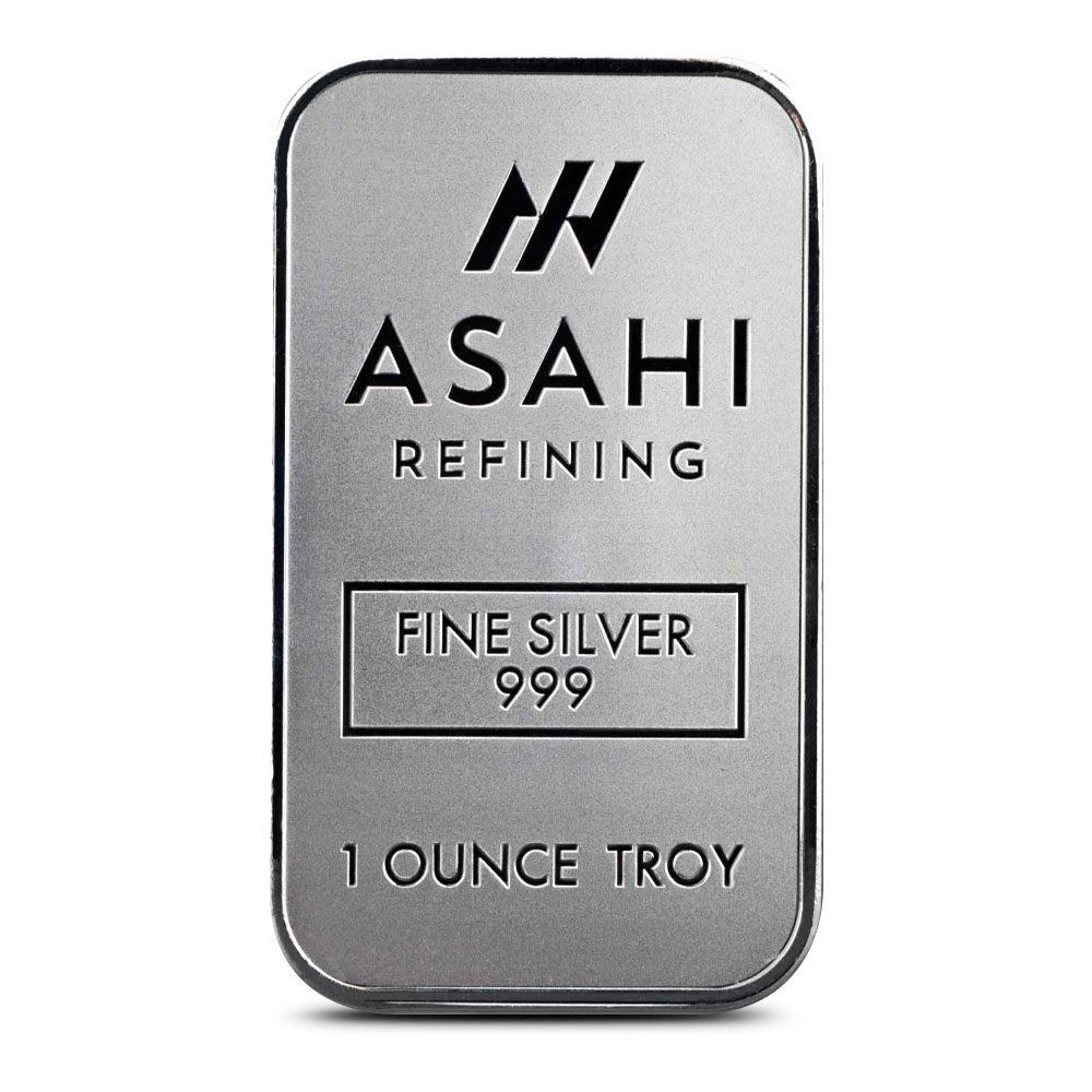 The obverse side of the Asahi Diwali Silver Bar displays the Asahi logo at the top, alongside key identifying hallmarks. These details ensure the bar’s authenticity and quality.