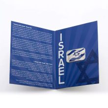 All 1 oz Colorized Holy Land Mint I Stand with Israel Silver Bars are beautifully packaged with a presentation card themed around Israel. This card provides detailed information about the bar release on its inner face, making it an excellent addition to any collection.