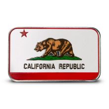 On the reverse, the 1 oz Colorized California State Flag Silver Bar proudly displays a colorized version of the California state flag, also known as the Bear Flag. Officially adopted on February 3, 1911, this flag has its origins in the Bear Flag Revolt of 1846. The flag features a brown California grizzly bear standing on green grass, with a red stripe running along the bottom. A red star is positioned above the bear, with the words “CALIFORNIA REPUBLIC” to the left. The designer’s inspiration for the star came from the Lone Star of the Republic of Texas, which had gained its independence from Mexico a decade earlier.