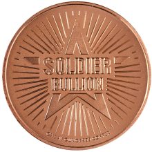 These 1 oz Soldier Bullion Captain Troy Rounds will be delivered to you in individual plastic flips, tubes of 20, or a box if you buy 500. Rather than Troy oz, the rounds are weighed using the Avoirdupois, or AVDP, system of measurement. Each piece was struck in pure copper and will arrive in new condition.