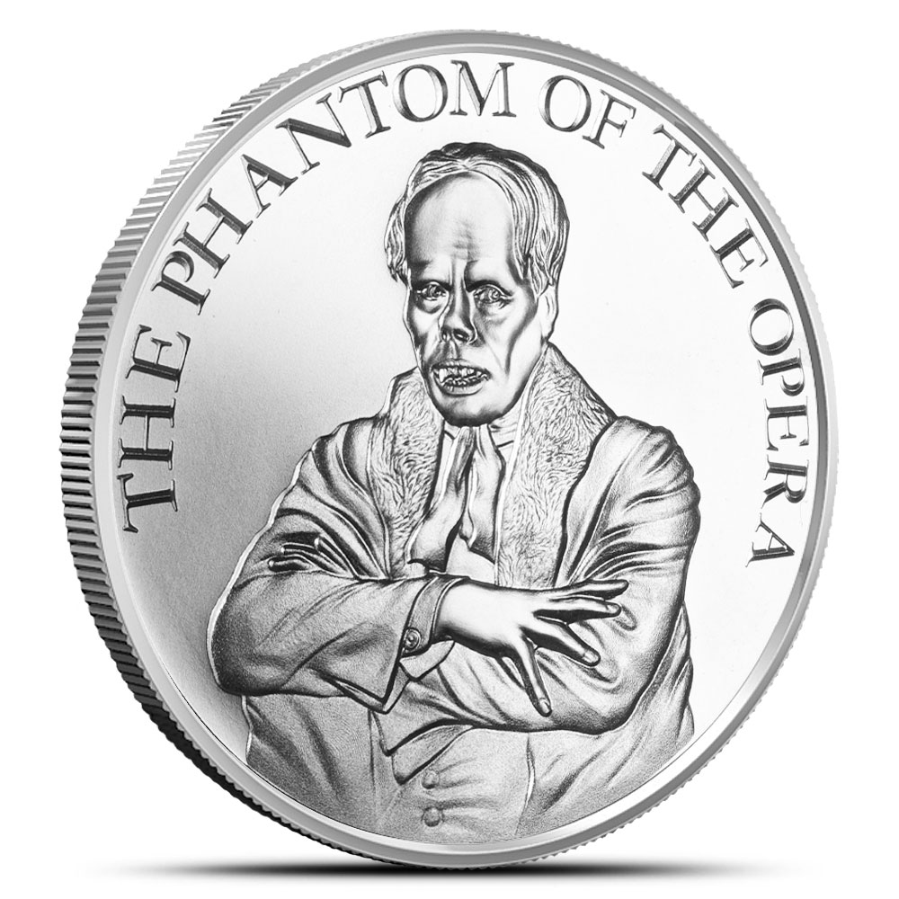 Crafted from .999 fine silver, each 1 oz Vintage Horror Phantom of the Opera Silver Round arrives in a protective plastic flip, preserving its mint condition. As the latest addition to the Vintage Horror Series, this round is an essential piece for silver stackers and fans of timeless horror tales alike.