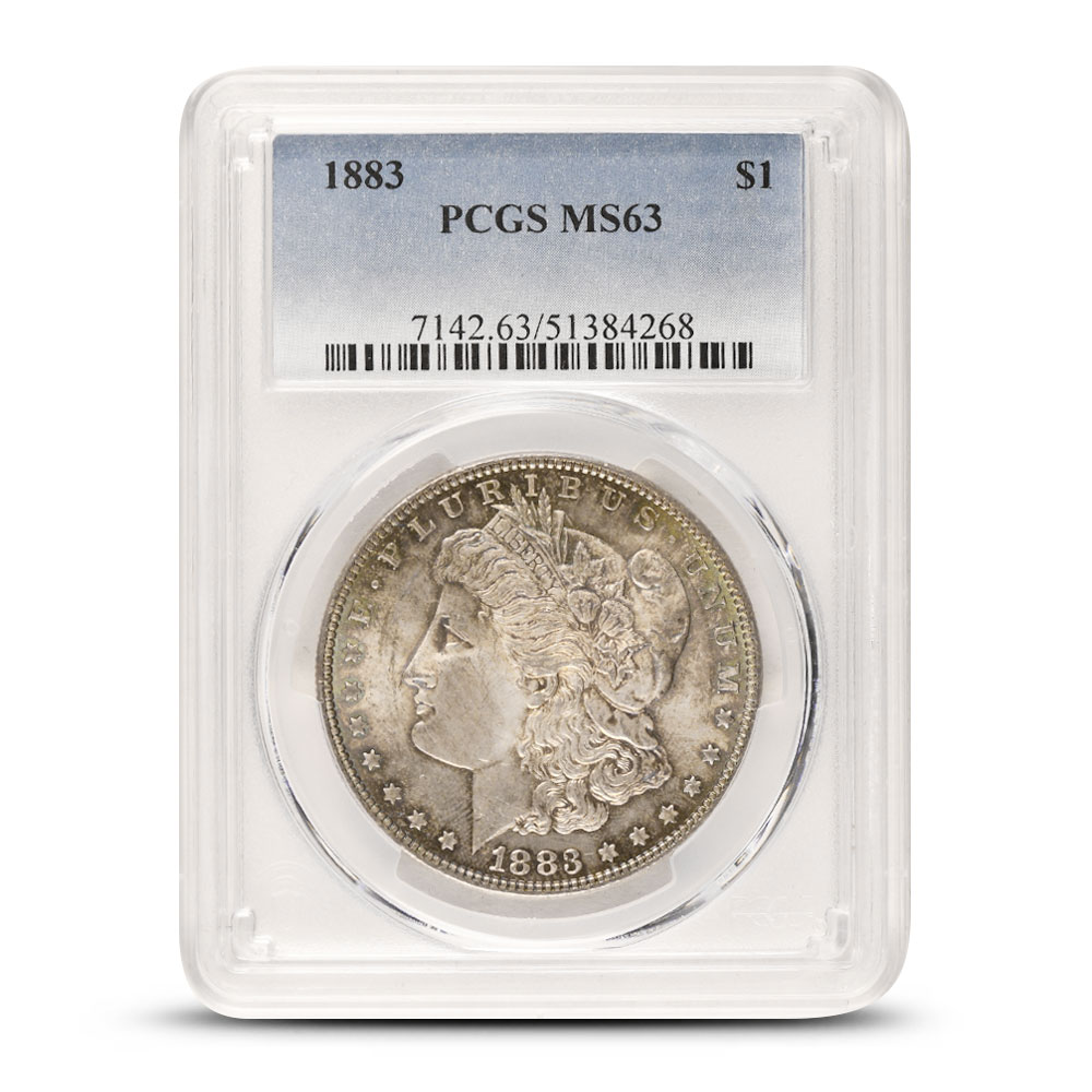 The 1883 Morgan Silver Dollar Coins offered here have a Mint State 63 grade. Coins in this condition have minor contact marks, a few heavier marks, and small hairlines, but maintain a nice mint luster. Philadelphias production of Morgan Dollars in 1883 was greater than that of any other mint facility.