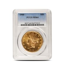 Each 1900 $20 Liberty Gold Double Eagle Coin has been graded Mint State 64 and comes sealed in a protective slab. These MS64 coins display pleasing luster, light marks, and minimal imperfections that make them appealing to collectors.