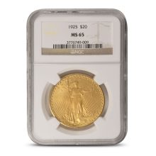 The 1925 Pre-33 $20 Saint-Gaudens Gold Double Eagle is one of the most important coins in the Saint-Gaudens series. Struck by three branch mints in the same year, this coin is a historic piece from one of the final two years when this minting method was used. Right now, 1925 Pre-33 $20 Saint-Gaudens Gold Double Eagle Coins in certified condition are available from BGASC.