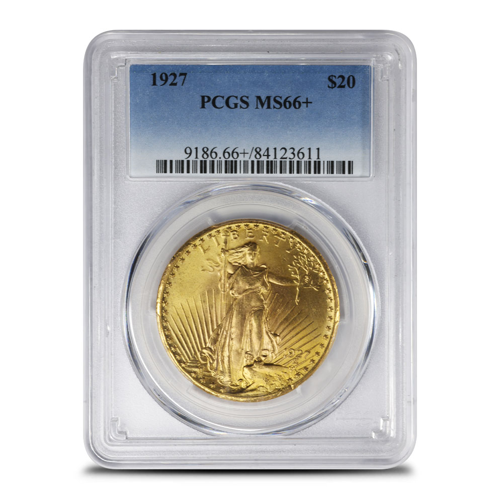 1927 $20 Saint Gaudens Gold Double Eagle Coin PCGS MS66+