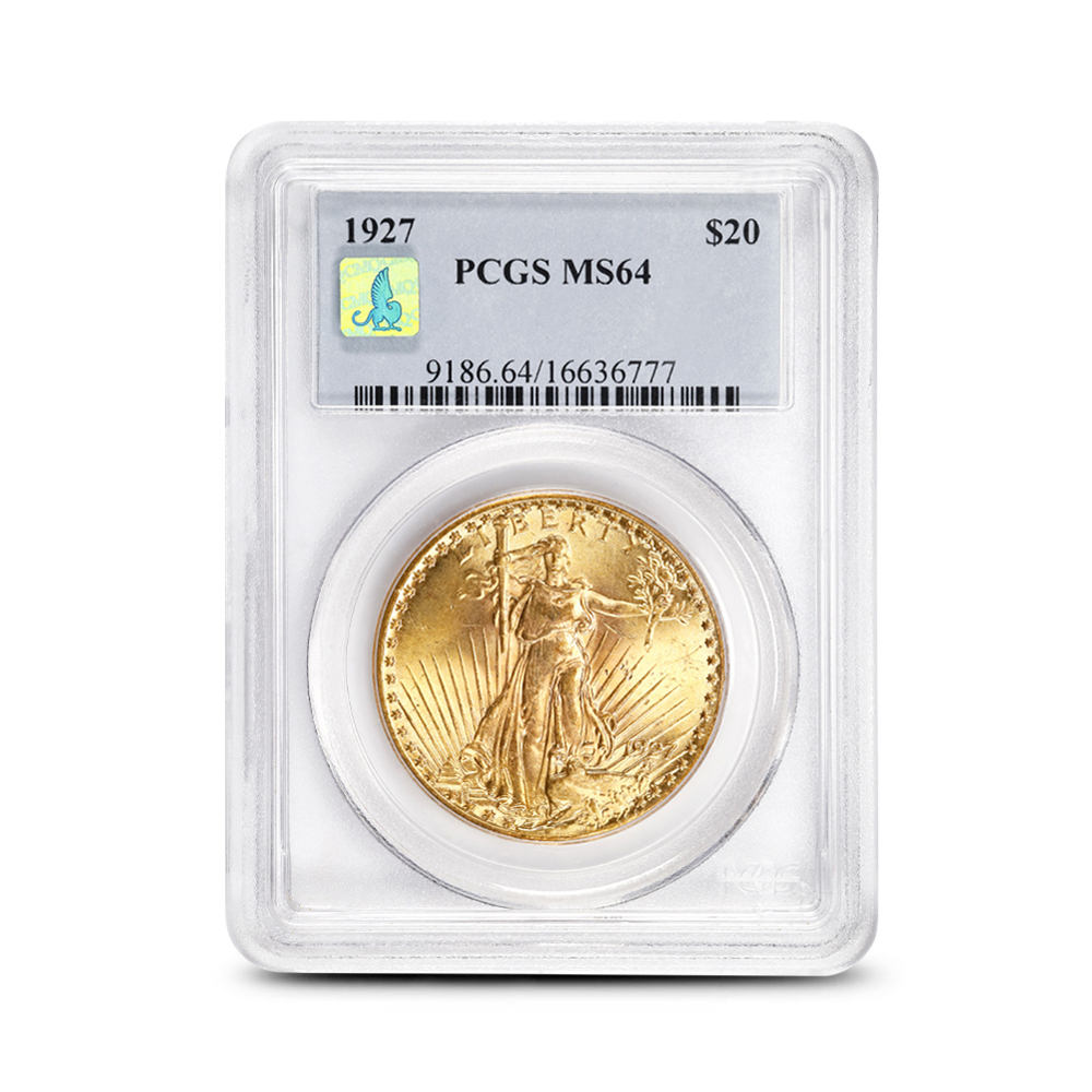 1927 Pre-33 $20 Saint Gaudens Gold Double Eagle Coin PCGS MS64 (CMQ Approved)