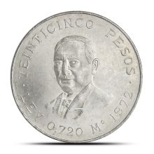 To commemorate 100 years since the death of President Benito Pablo Juarez, the Mexican Mint released a 25 Pesos silver coin in 1972. Struck in an alloy of 72% silver and 28% copper, this historic coin features edge lettering and was issued with a limited mintage. BGASC is pleased to offer the 1972 25 Pesos Mexican Silver Juarez Coin to collectors.