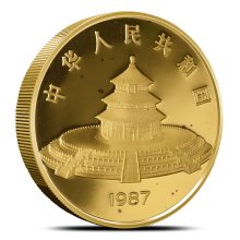 Every 1987 12 oz Chinese Gold Panda Coin is accompanied by a presentation box and Certificate of Authenticity, ensuring its authenticity and preservation. With its substantial 12 Troy ounces of .999 gold content, this coin is a standout piece in any collection.