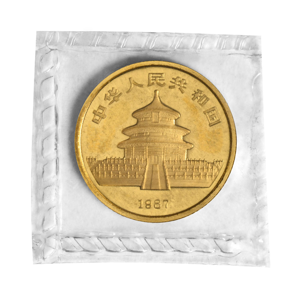 Each 1987-S 1/10 oz Chinese Gold Panda Coin is shipped inside a protective flip. The Shanghai Mint struck these coins, marked with the S mint mark. In 1987, the series saw contributions from both Shanghai and Shenyang Mints, creating the only year in which two facilities produced Gold Pandas.