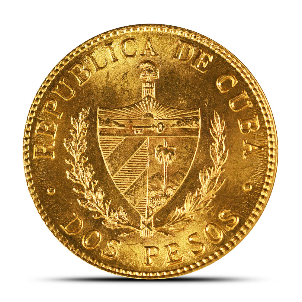 Each 2 Peso Cuba Gold Coin arrives in protective plastic. The coins are composed of 90% gold and 10% copper. Available coins may vary by year of issue, design type (BU or proof), and overall condition. We do not offer hand-picking for year or grade, and buyers may receive matching or different coins if ordering multiples.