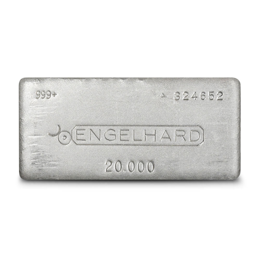 Each 20 oz Engelhard Cast-Poured Silver Bar will arrive in a protective plastic bag, with each bar individually packaged. The bars are cast-poured and proudly display the unique Engelhard Bull logo.