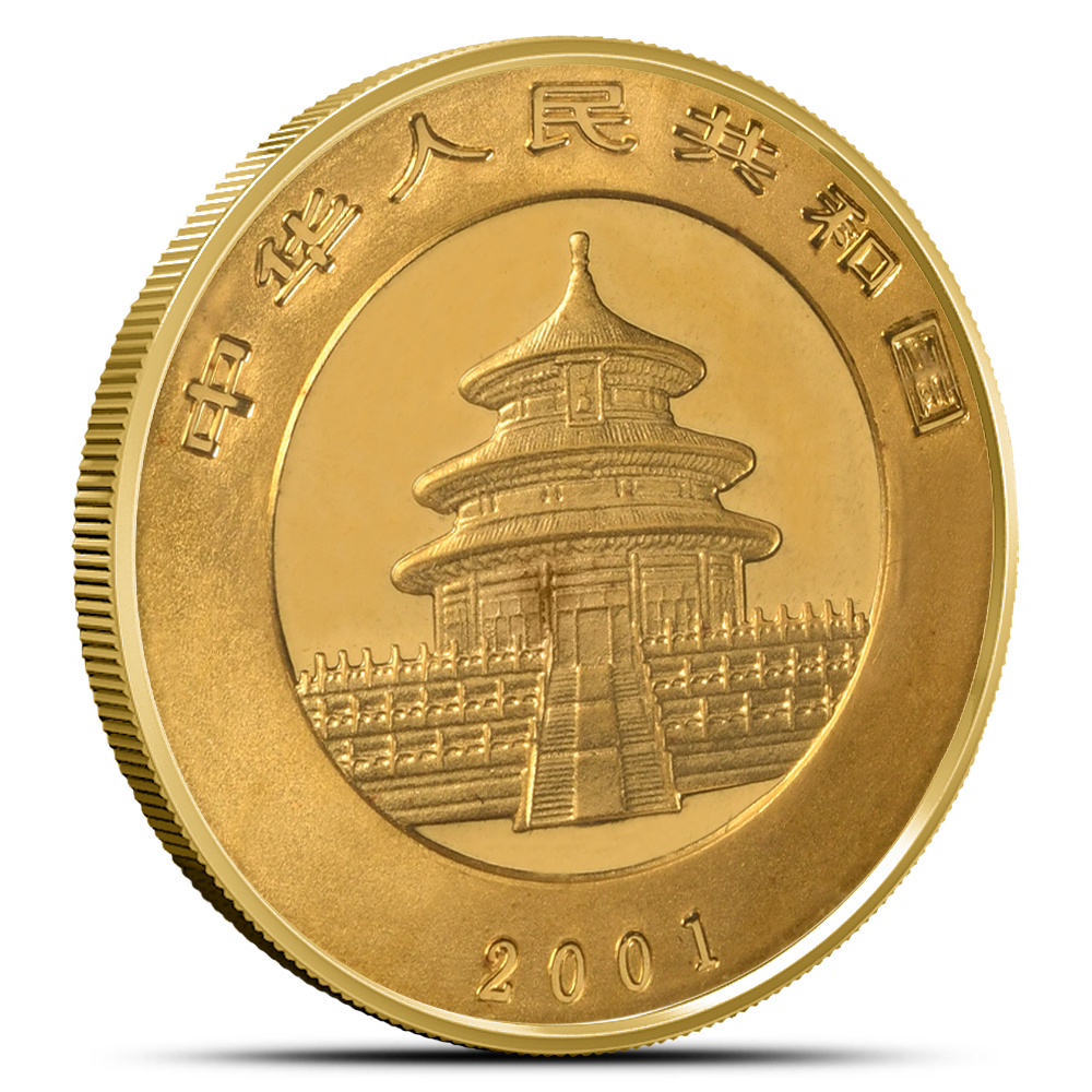 The Chinese Mint launched the Gold Panda bullion coin series in 1982. The first releases included gold coins in 1 oz, 1/2 oz, 1/4 oz, and 1/10 oz weights. One year later, a 1/20 oz coin was added. This series stands out for its unique feature of changing the panda design nearly every year. Right now, BGASC is offering the 2001 1/4 oz Chinese Gold Panda Coin for purchase online.