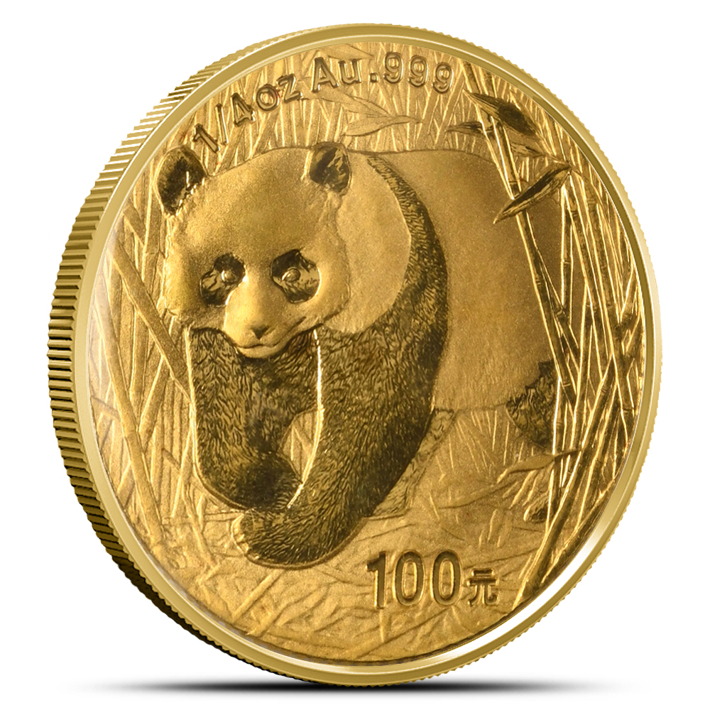 On the front of the 2001 1/4 oz Gold Panda Coin, youll see a Giant Panda walking on all fours through a grove of bamboo. These animals are known for their bamboo-based diets, and they spend most of their time eating. Every day, pandas may consume between 26 and 84 pounds of bamboo over the course of 12 to 16 hours.