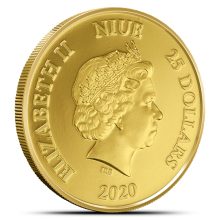 The obverse of the 2020 Proof Niue Disney Mickey Mouse Steamboat Willie Gold Coin features Queen Elizabeth II. The image, created by Ian Rank-Broadley in 1998, shows Her Majesty in right-profile relief, wearing the Girls of Great Britain and Ireland Tiara. This bust is featured on many coins from various nations, including Britain, Australia, and Niue.