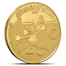 Steamboat Willie premiered on November 18, 1928. This classic film is seen as the debut of Mickey Mouse, even though he had two earlier silent cartoon appearances that were less well-known. In 2020, the New Zealand Mint honored Mickey Mouse’s iconic debut with a 1/4 oz gold coin. Right now, 2020 1/4 oz Proof Niue Disney Mickey Mouse Steamboat Willie Gold Coins are available from BGASC.