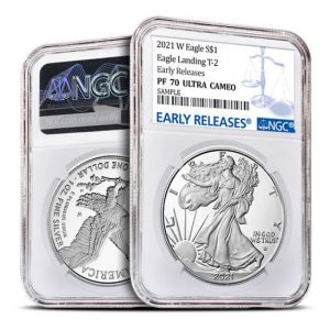 Each 2021 1 oz Proof American Silver Eagle Coin embodies perfection, boasting the esteemed PF70 certification. These coins exude original mint luster and carry additional UCAM and Early Release designations, solidifying their unmatched quality.