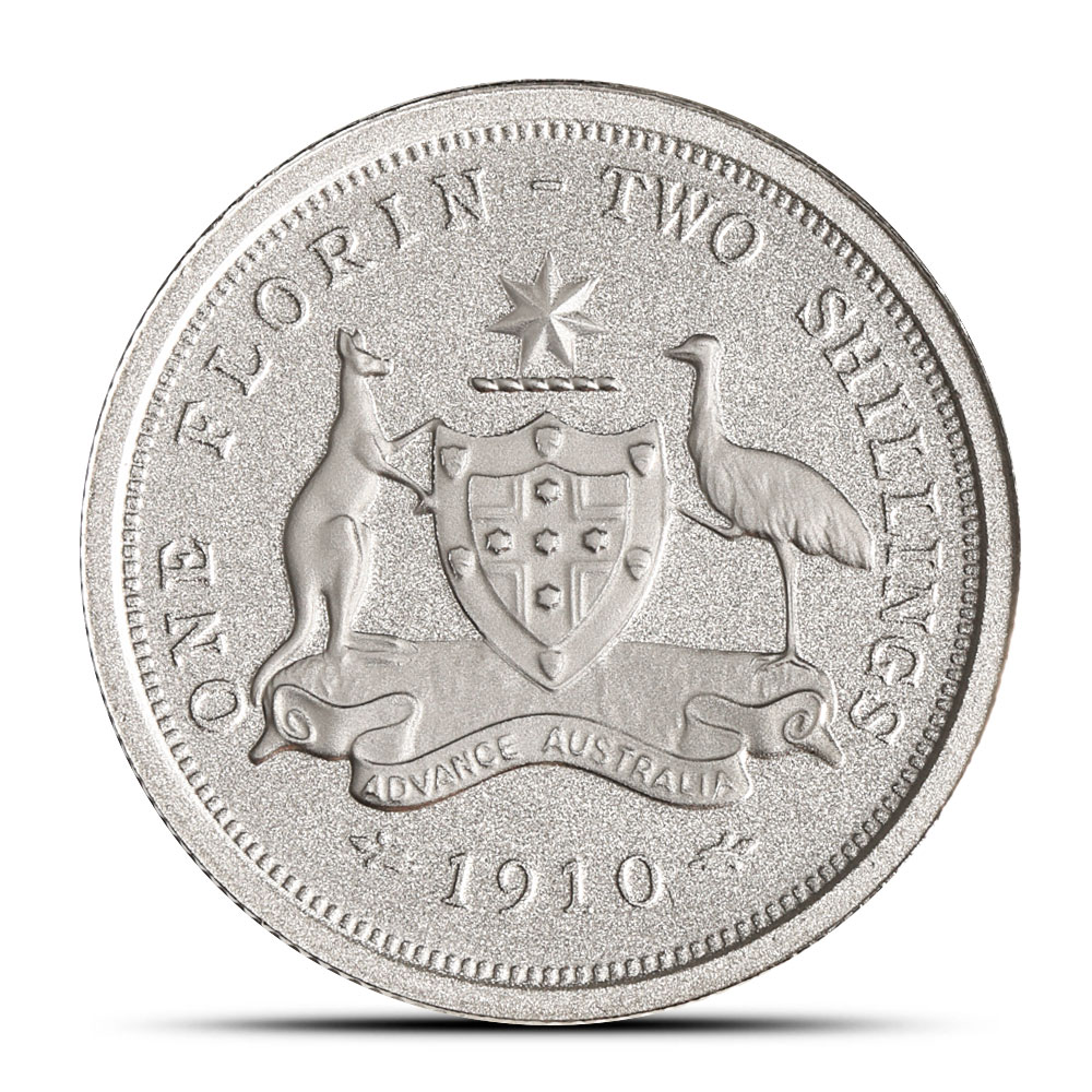 The original Australian florin was struck in sterling silver and featured King Edward VII on the obverse. Produced by the Royal Mint in Melbourne, this coin highlighted Australias emerging national identity and economic autonomy. Modeled after Britains florin, introduced in 1847 under Queen Victoria, this coin represented two shillings in pre-decimal currency.