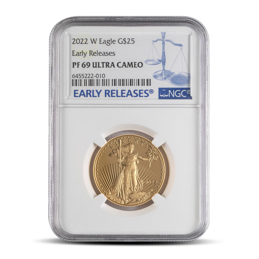 Home » Sovereign & Private Bullion Mints » United States Mint » 2022-W 1/2 oz Proof American Gold Eagle Coin NGC PF69 (Varied Label)