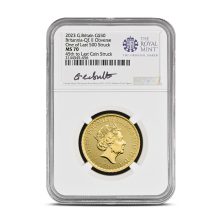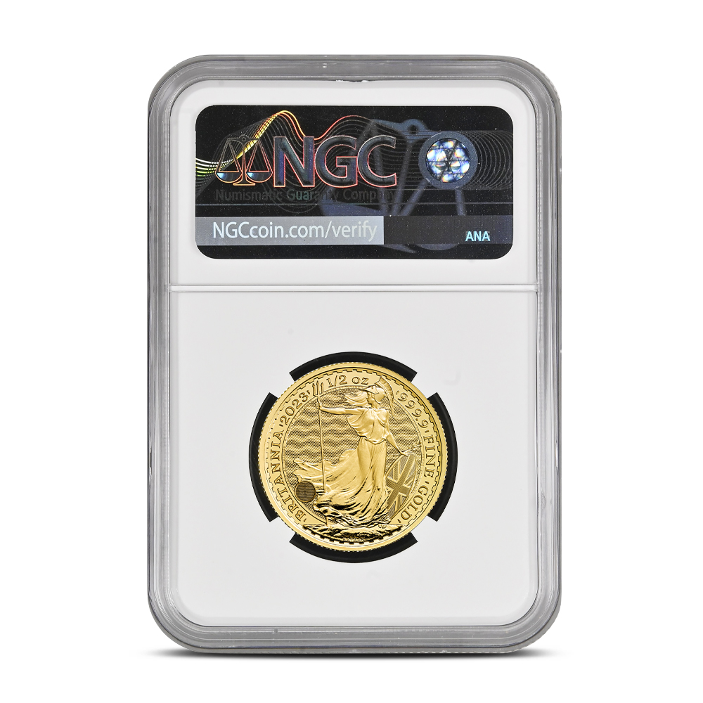 Collectors of the Gold Britannia Series have come to expect the consistent image of the monarch on the obverse. From its debut in 1987 until 2022, Queen Elizabeth II was featured on these coins annually. Following her passing in September 2022, The Royal Mint had to depict a new monarch for the first time in the series history. Nonetheless, early 2023 issues still feature the late Queen. Now, you can purchase 2023 1/2 oz British Gold Britannia Coins in certified condition from BGASC.