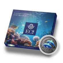 At BGASC, we’re thrilled to present the newest addition to the EC8 Series, showcasing the majestic dolphins of Dominica! Dive into the depths of beauty with the 2023 1 oz Proof Colorized EC8 Silver Dominica Dolphin Coin, now available for your collection.