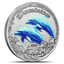 2023 1 oz Proof Colorized EC8 Silver Dominica Dolphin Coin