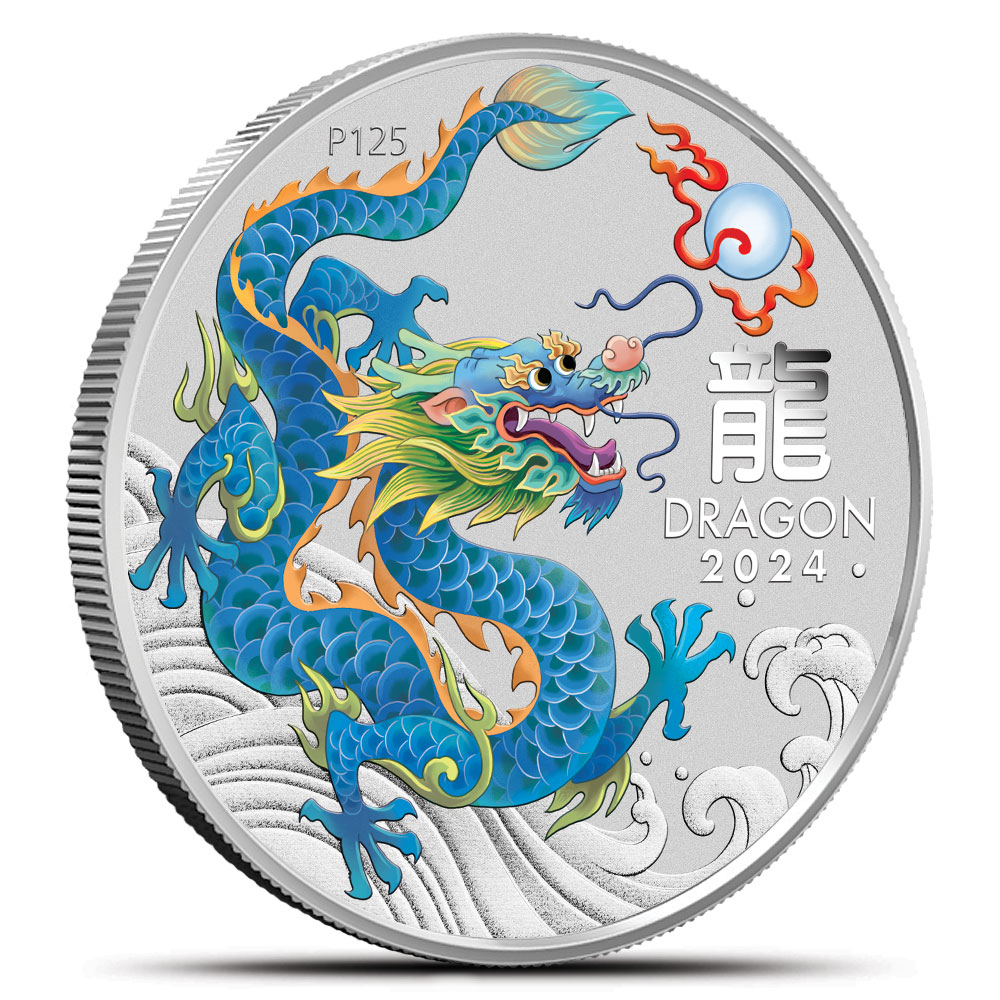 In Chinese mythology, dragons are deeply associated with water. Teal dragons, in particular, are closely connected to water bodies such as rivers, lakes, and seas due to their color. They are often depicted as water deities or protectors of aquatic realms. This ties into the Chinese belief in dragons as controllers of rainfall and water-related events. Now, 2024 1/2 oz Colorized Australian Silver Lunar Teal Dragon Coins are available online from BGASC.