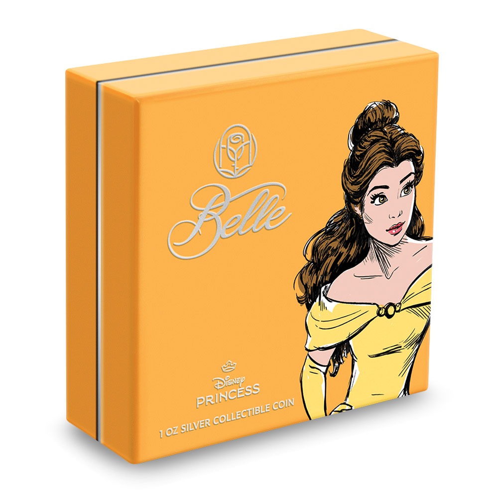 Each 2024 1 oz Proof Colorized Niue Silver Belle Coin comes packaged in a lovely jewelry box that features a mirror inside the lid and a hidden drawer for small keepsakes. The set also includes a themed outer shipper and a Certificate of Authenticity, making it an excellent collectible for fans of the movie.