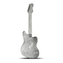 Each 2024 1 oz Reverse Proof Solomon Islands Silver Fender Jaguar Guitar Shaped Coin is meticulously housed in an individual box for safekeeping. Encapsulated within uniquely shaped capsules, these coins boast reverse-proof visuals, a vibrant colorized reverse, and a distinctive serial number on the obverse.