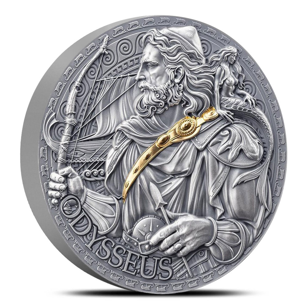 Home » Gold, Silver and Platinum Bullion » Buy Silver Bullion Coins, Bars, and Rounds » 2024 2 oz Antique Cameroon Silver Greek Mythology Odysseus Coin (Box + CoA)