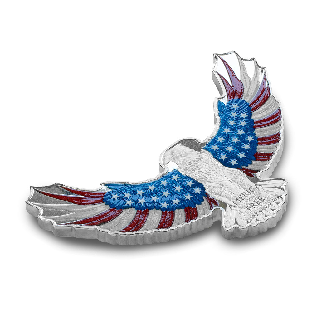 Celebrate American pride and heritage with the 2024 2 oz Colorized Solomon Islands Silver Bald Eagle Coin from the popular America the Free series. This stunning 4th release in the series captures the majesty of our national bird, the bald eagle, in .999 silver with vivid colorization details. Available now at BGASC.