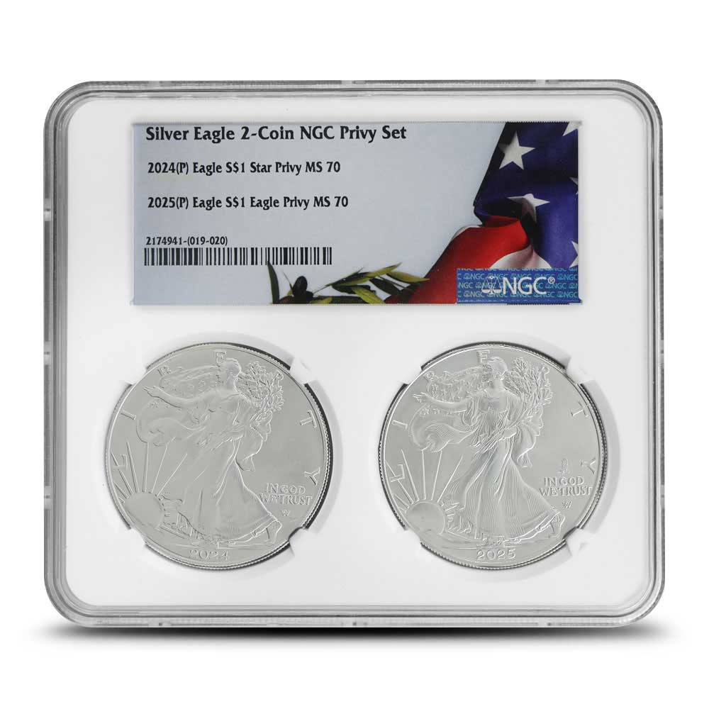 2024/2025 1 oz Star and Eagle Privy American Silver Eagle 2-Coin Set NGC MS70