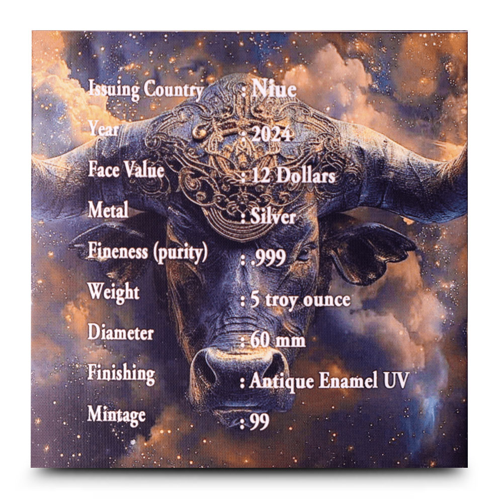With its extremely limited worldwide mintage of just 99 pieces struck in an exceptional antique finish, the 2024 5 oz Antique Niue Silver Taurus Coin represents a truly unique collectible. This coin arrives inside a presentation case along with a Certificate of Authenticity.