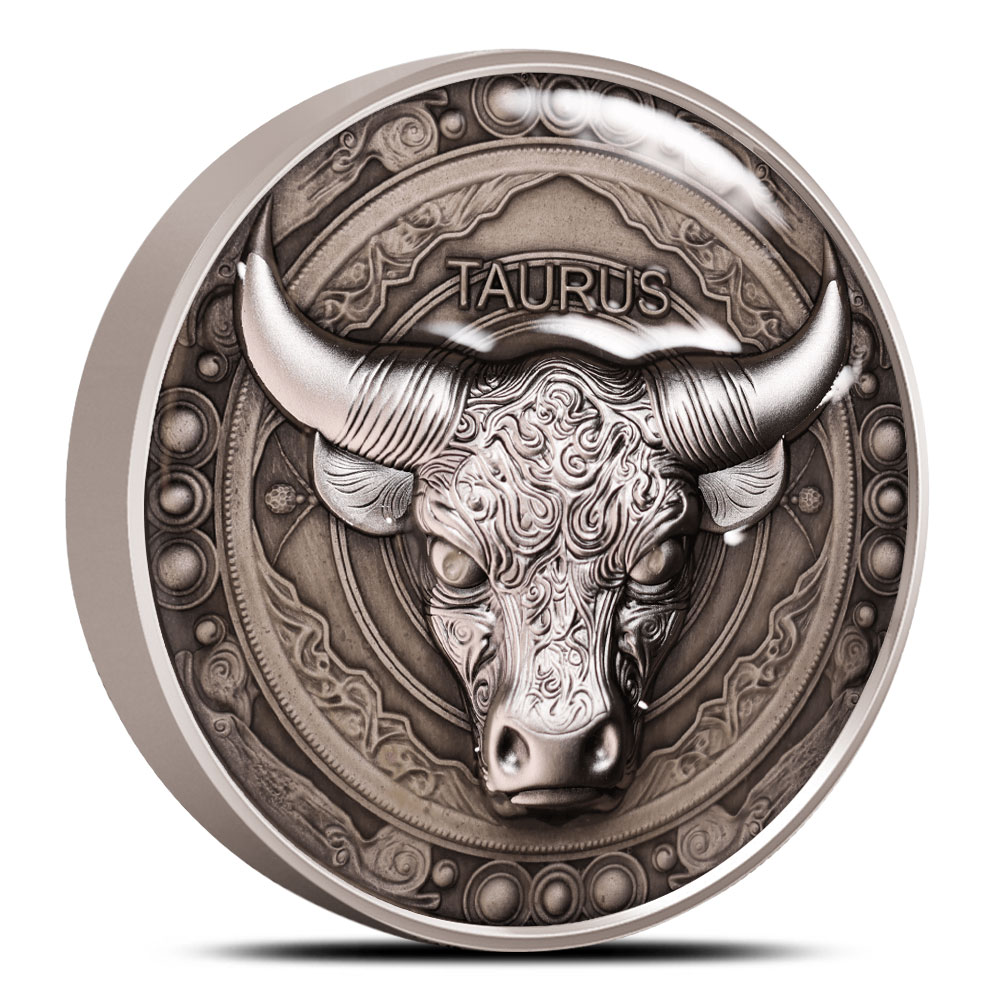 Those born between mid-April and mid-May fall under the Taurus astrological sign. Taurus individuals are renowned for their stubbornness, diligence, and unwavering loyalty traits embodied by the powerful bull that symbolize this zodiac. Celebrate the unshakable spirit of Taurus with the exceptional 2024 5 oz Antique Niue Silver Taurus Coin from BGASC.