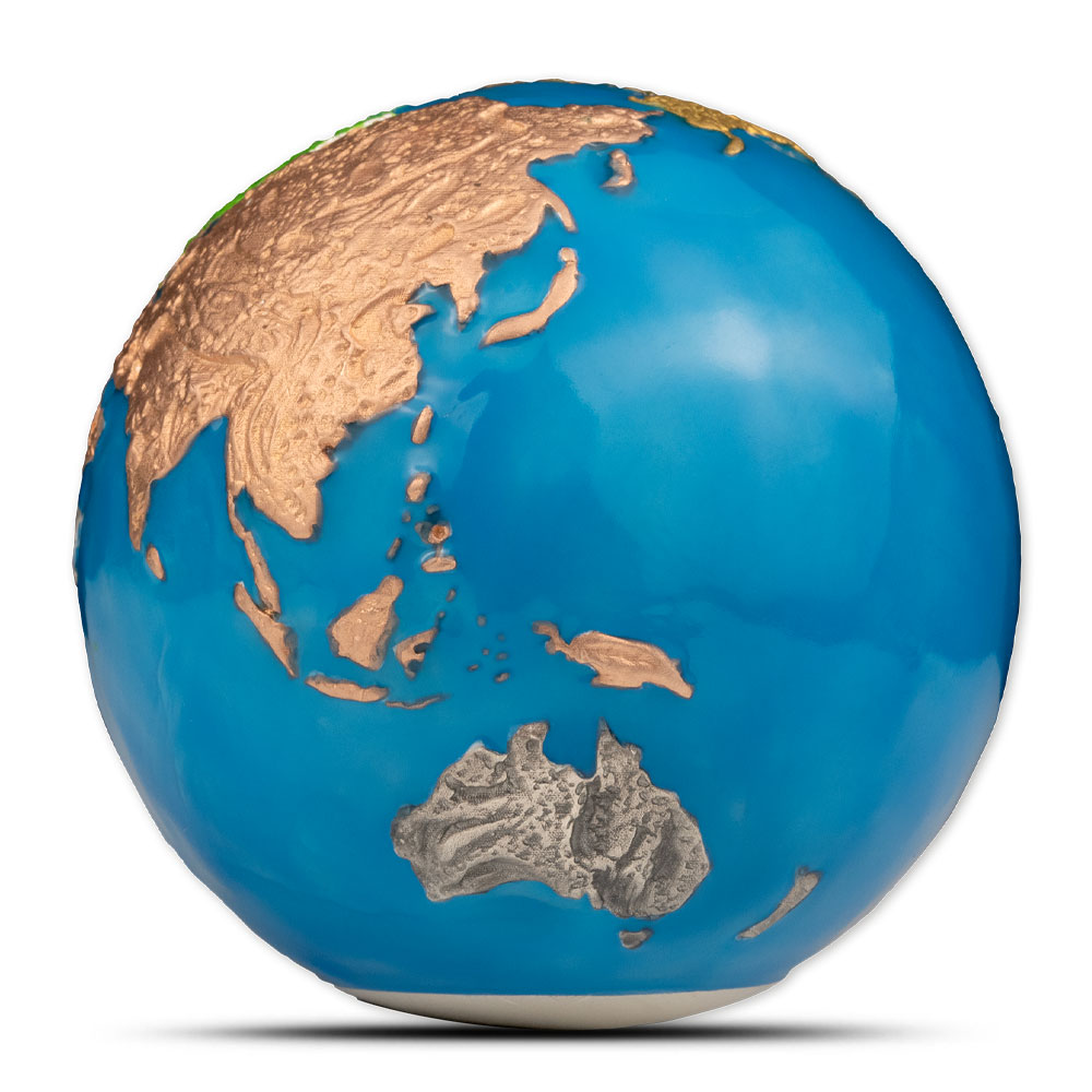 This landmark release marks five years since the original trailblazing Blue Marble Coin took the numismatic world by storm. While previous editions were struck in a 3 oz weight with a single technique, this 5th-anniversary piece goes grand with five distinct minting techniques across an impressive 5 oz of pure silver redefining the art of coining.