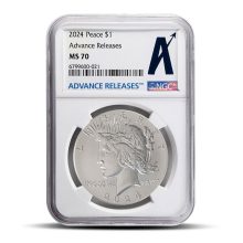 This 2024 Peace Silver Dollar Coin comes safely encapsulated in an NGC protective slab, preserving its flawless Mint State 70 condition. This perfect grade ensures your coin displays immaculate, original mint luster without a single imperfection, even under 5x magnification. The Advanced Release designation adds an extra layer of exclusivity, indicating NGC received and graded this coin before its public release.