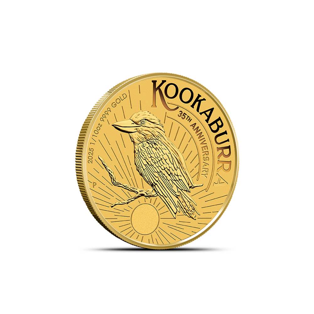Since 1990, the Perth Mints Kookaburra Series has brought collectors a new look at Australias native bird each year. Originally released in silver, the series has grown to include gold and platinum editions as well. BGASC is pleased to offer the 2025 1/10 oz Australian Gold Kookaburra Coin.