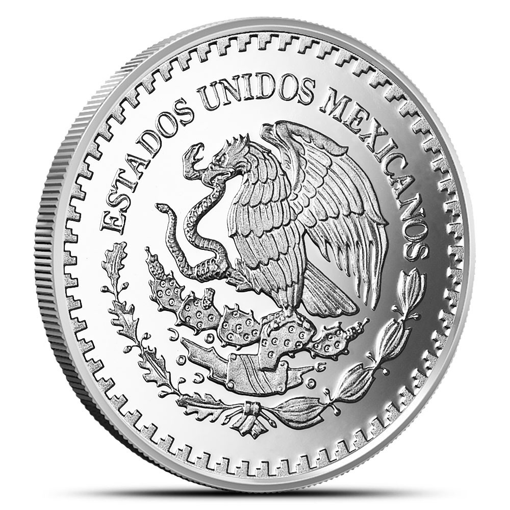 The reverse of this proof coin depicts Winged Victory, a symbol linked with Mexicos independence. She is standing on the top of the Victory Column, with two well-known Mexican volcanoesPopocatepetl and Iztaccihuatlin the distance.