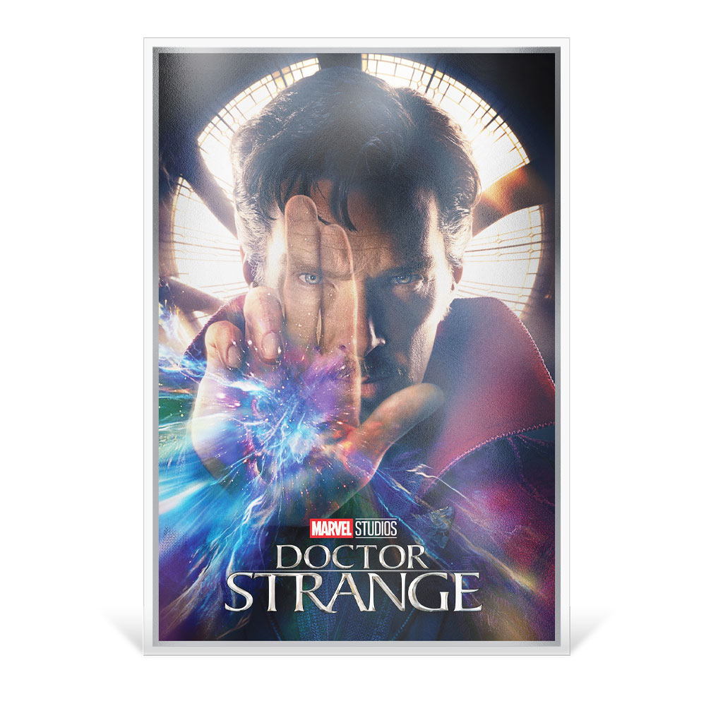Each 2025 1.5 oz Proof Niue Silver Marvel Infinity Saga Doctor Strange Foil comes individually packaged. The foil is enclosed in a protective plastic sleeve inside a display box and includes a Certificate of Authenticity. It features proof-quality details with a reverse design that replicates the theatrical poster for Marvels Doctor Strange.