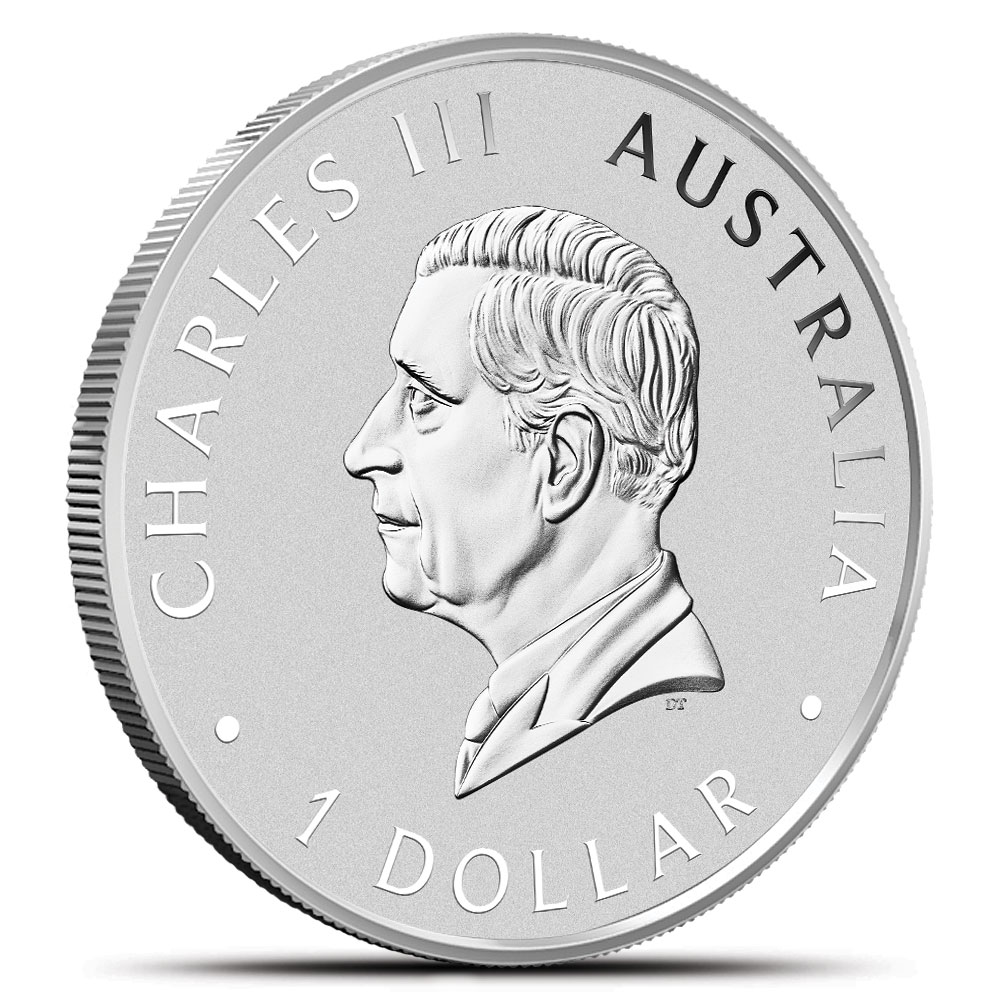 The obverse design of the 2025 1 oz Colorized Silver Koala Coin features a portrait of His Majesty King Charles III. This is the first Australian coin series to feature his likeness, shown here without a crown and facing left. The design was created by artist Dan Thorne in 2024.