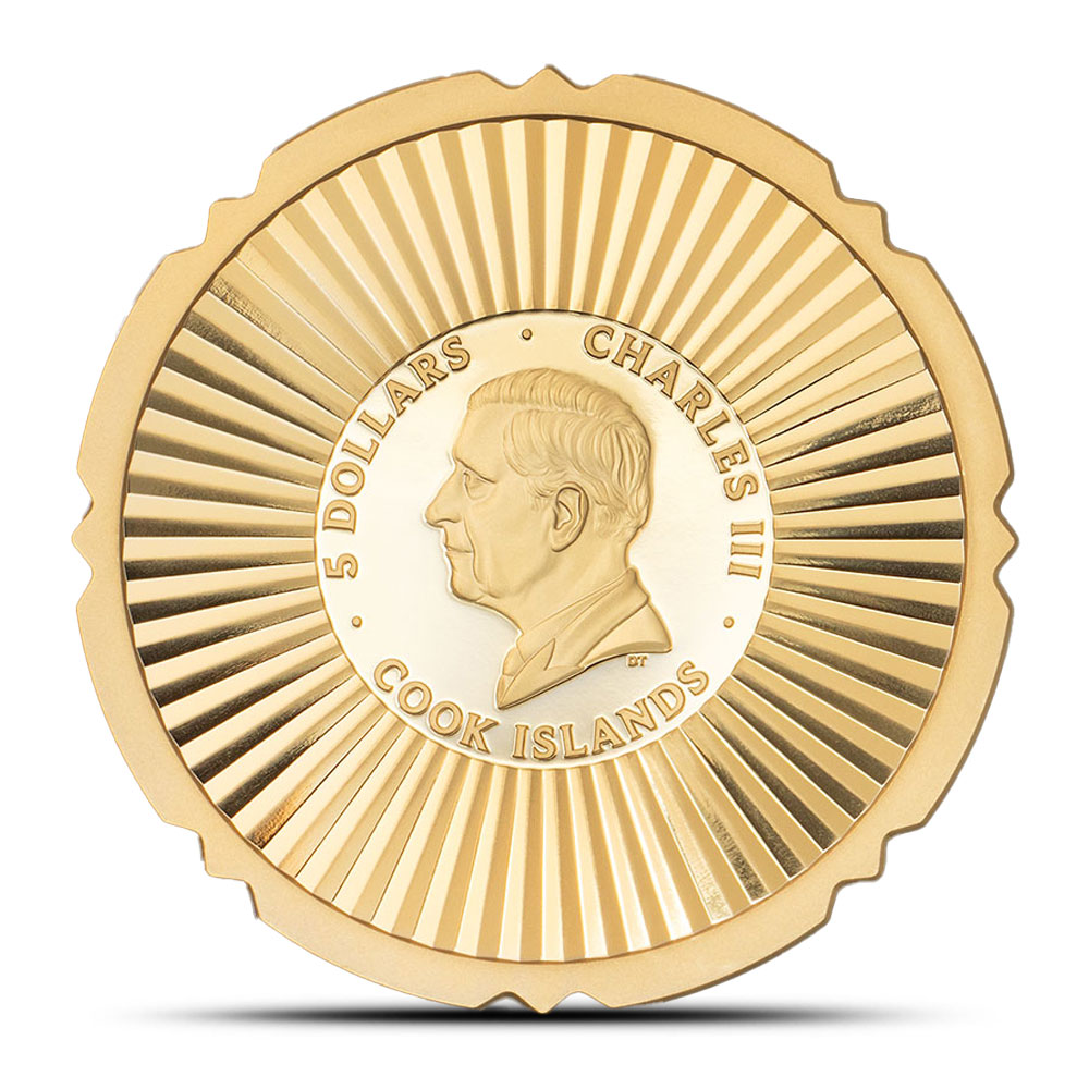 The obverse of the 2025 1 oz Proof Colorized Silver Evergreen Clover Coin features a detailed portrait of King Charles III, facing left. This effigy, created by Dan Thorne, marks one of the earliest official portraits of the monarch used on Cook Islands issues.
